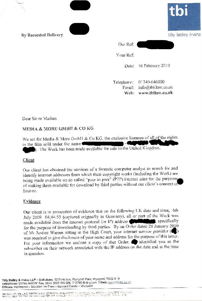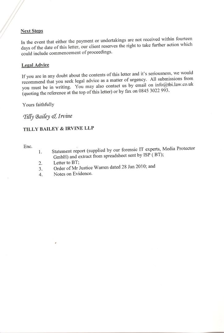 The only difference I can see is that TBI seem to be trying to outdo D/L in the agressiveness of their approach. They seem to be breaking the same pre-action protocols as all the other shy.. err ...law firms involved in this sca... err ...scheme.