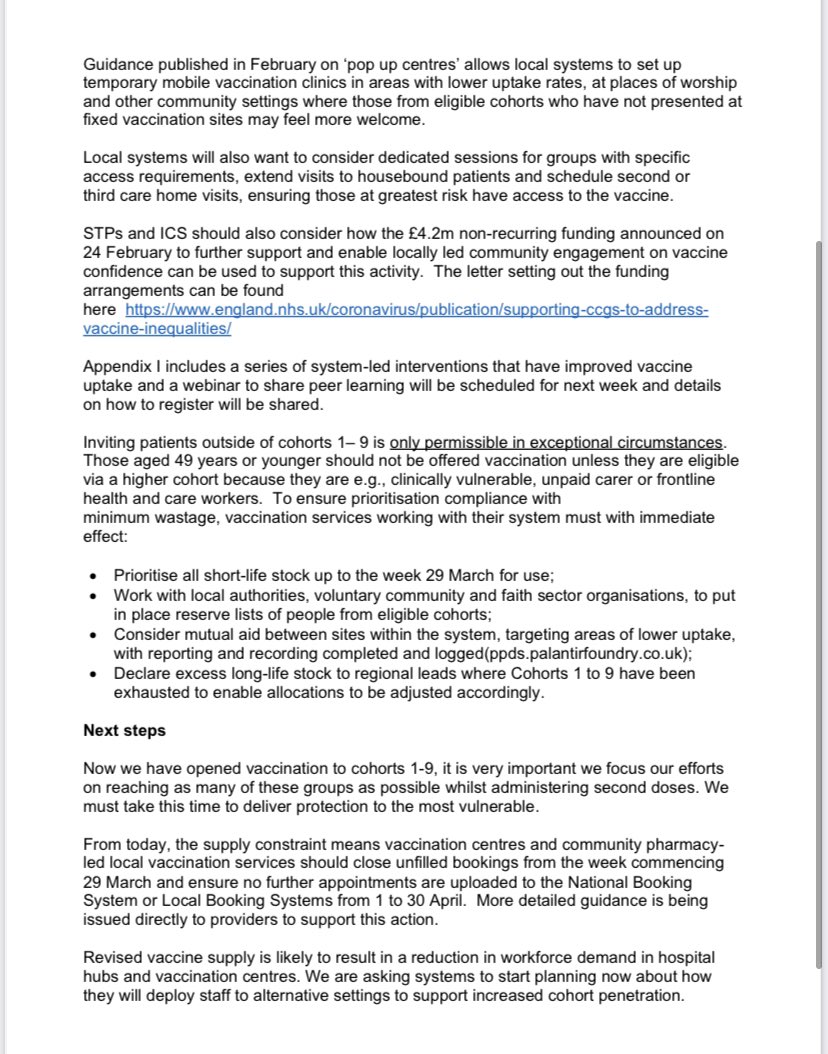 It also says organisations should "ensure no further appointments are uploaded to the national booking system or local booking system" in April.
